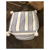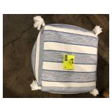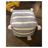 Hampton Bay 18 in. x 18 in. x 18 in. White and Blue Square Outdoor Pouf with Tassel Customer Returns See Pictures