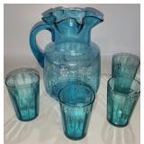 Stunning Hand Painted Punch Bowl, Ladle & Cups
