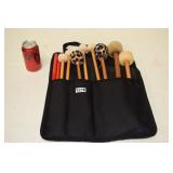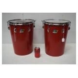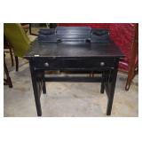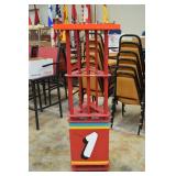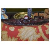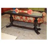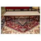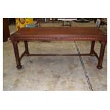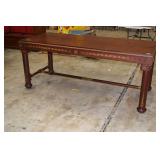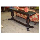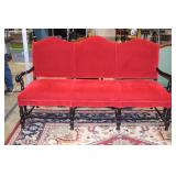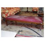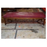 LOT 1084 - HAND PAINTED RED LEATHER BENCH