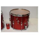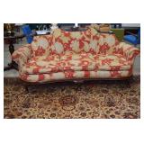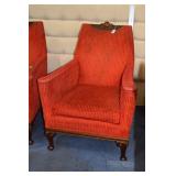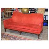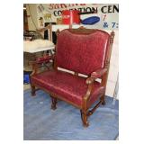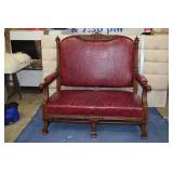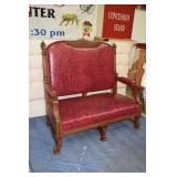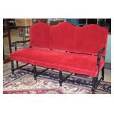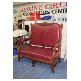 LOT 1079 RED UPHOLSTERED TALL BACK SEATEE