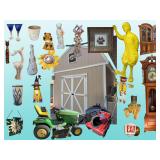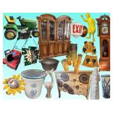Yard decor of all kinds-wooden pig, broken wing cement gargoyle, stepping stones, etc