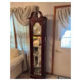 Howard Miller Cherish battery operated floor clock, lighted with mirrored back and glass shelves Model 610-614 9.5D x 17L x 76H NO CONTENTS