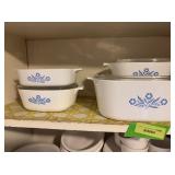 All on corner shelf includes Hummel replicas, small stoneware crock, glass jars and more