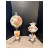 Pair of matching clear acrylic lamps and small lamp w glass prisms