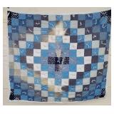 Blue Knotted Patch Work Quilt with Scalloped Edges