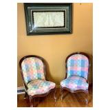 Victorian Slipper Chair w/ Checkered Upholstery &