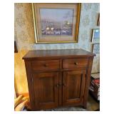 Very unique vintage wooden medicine cabinet w/tin Insert 23" w x 30" h CONTENTS INCLUDED...