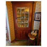Vintage wooden corner hutch 44.5 x 28 center from corner x 32.5 side from corner x 78.5" in excellent vintage condition CONTENTS IN AND ON NOT INCLUDED...
