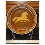 Gorgeous Vintage Ned Foltz Redware Pottery 9x2.25" Bowl w/Horse in excellent vintage condition...