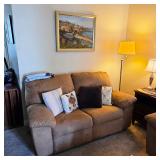 Gorgeous leather sofas (The Leather Factory), mid century decor, mid century paintings