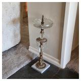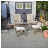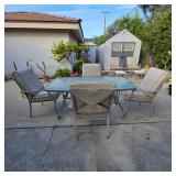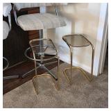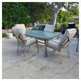 Mid century modern smoked glass top table, vintage Chromcraft chairs