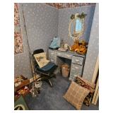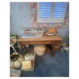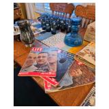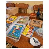 Full house Comics vintage furniture, cabinets full of vintage dishes. Art, hummels, kitchenware, dining room table, bench, garage full