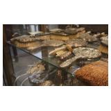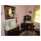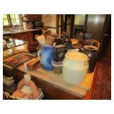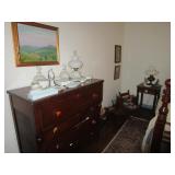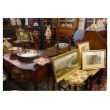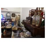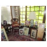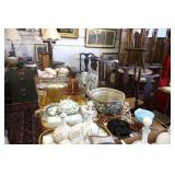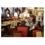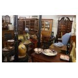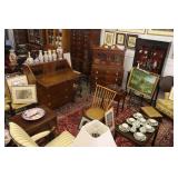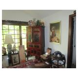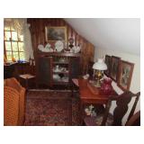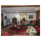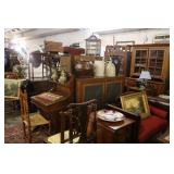 VALLEY AND VIRGINIA WEST MOUNTAIN FURNITURE AND AMERICAN ARTWORK INCLUDING LANDSCAPES DONE BY THE ARTIST FROM THE HUDSON VALLEY SCHOOL. MANY LANDSCAPES DONE BY ARTIST FROM THE HUDSON VALLEY SCHOOL. SEVERAL LARGE ANTIQUE PORTRAITS, 50 + OLD WOODEN BLOCK PRINTS FRAMED AND MATTED. 50 + FRAMED OLD CURRIER AND IVES. UNFRAMED CHINESE SCROLLS, 3 PINE CUB BARDS AND VIRGINIA WEST MOUNTAINS. 1810 TWO-PIECE MAHOGANY BREAK FRONT WITH FRENCH PORCELAIN MEDALLIONS, 1790 SMALL SERVER WITH DRAWERS, 1820'S HEPPLEWHITE DROP FRONT DESK WITH INLAID WORK. 1840'S SHERATON 2 DOOR WRITING DESK. 4 ANTIQUE PIE SAFES WITH TIN AND ANTIQUE JELLY CUPBOARD, EARLY TALL CARVED FOUR DOOR CHINESE CABINET, MANY CHINESE CABINETS INCLUDING FERN STANDS, ROSEWOOD FERN STANDS AND SMALL CABINETS. 60 + VERY EARLY DECORATIVE SIDE CHAIRS, MANY SMALL TABLES INCLUDING TILT TOPS AND 1830'S ONE DRAWER WORKTABLES, BEAUTIFUL CARVED VICTORIAN BEDS AND VICTORIAN DROP WELL DRESSERS. MARBLE TOP WASHSTANDS, MARBLE TOP PARLOR TABLES. 75+ HAND PAINTED DECORATIVE OIL LAMPS, CRANBERRY HANGING LAMPS. 300 + ANTIQUE ORIENTAL VASES, DISHES, PLATTERS AND GINGER JARS. EARLY PRESS AND CUT GLASS AND VICTORIAN MILK GLASS DRESSER SETS. WATERFORD CRYSTAL, BACCARAT CRYSTAL AND ART GLASS. 30+ ADVERTISING CROCKS AND JARS. MANY HAND KNOTTED PERSIAN RUGS, AND SILK RUGS, AND ROOM SIZE RUGS, 13 COLONY SHERATON DISPLAY CABINET, ANTIQUE THOUSAND CHINESE BUTTERFLY DISHES, CHIPPENDALE SOFA, WING CHAIRS, 4 ANTIQUE WORK TABLES, PRETTY CLAW FOOT CURVED ARM, CARVED BACK SETTEE FURNITURE. BLUE, RED AND MANY OTHER STAFFORDSHIRE DISHES. BOWLS, PLATTERS AND COVERED DISHES, CANTON COVERED DISHES AND SOUP TUREEN. CHINESE ALTAR TABLES. PAIR OF EARLY CHINESE THRONE CHAIRS. WICKER FURNITURE, ANTIQUE TRUNKS, BENCHES, STOOLS, HANGING DISPLAY CABINET, OLD PINE FURNITURE. FRENCH BRONZE CLOCK. ART GLASS, ROSE MEDALLION CASES, IMARI VASES AND PLATTERS, 1900'S SIDE BY SIDE WASHSTAND. ADVERTISING CIGAR CLOCK, WOODEN BUCKETS. 2,500 GRAMS OF GOLD AND SILVER JEWELRY. GOLD JEWELRY 14KT AND 10KT AND 22KT GOLD. 2.50 CT. DIAMOND PENDANT. 14KT GOLD HEAVY GOLD BRACELET AND 40 GOLD BANGLES. JADE, QUARTZ, AMETHYST AND MANY OTHER PRECIOUS STONED JEWELRY. STERLING SILVER JEWELRY WITH TURQUOISE WITH MAKERS MARK. OTHER STERLING JEWELRY. DISPLAY CABINET FULL OF ORIENTAL JEWELRY. BAGS OF CUSTOM JEWELRY, ANTIQUE GOLD FILLED JEWELRY, WORLDWIDE CUSTOM MADE JEWELRY.