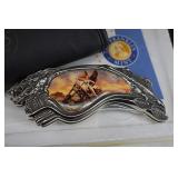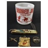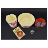 We have switched to the bidding platform Hibid, so all bidders will need to re-register for a new bidder number and password. Go To www.bhdauctions.com To Bid Catalog: 1 Brian Pulidos Lady Demon by Chaos Comics Dark Millennium 2 Argo The Sword of Jason Fantasy Display Piece Warlord Collection 3 Vampire Girls Light-Up Print by Brain Rood Artist Signed 4 Assorted Fantasy Figures / Sculptures 5 Fantasy Skeleton / Bone Dagger 6 1969 Walt Kelly Pogo Figures - Porky Pine, Beauregard Hound, Howland Owl & Albert Alligator 7 3 Fantasy Figures / Display Pieces 8 Spawn & 2 Devil May Cry Action Figures In Package 9 Soultaker, Spawn & Vampire Hunter Action Figures In Package 10 Moore Creations Stamese Twin Busts In Box 11 5 Knight Stone Collection Fantasy Knives by Franklin Mint 12 Sony PlayStation PS2 w/ Memory Card & Cords 13 Sony PlayStation PS One Combo - Appears Complete In Box Possibly New Never Used 14 Large Primitive Wood Mortar & Pestle 15 Shaker Shop Sturbridge VA Pair Dry Measurer's 16 Primitive Kitchenware - Cutting Board, Single Blade Chopper, Butter Mold, Etc. 17 Antique Oil Lamp w/ Milkglass Hobnail Shade 18 Antique Spun Brass Kettle w/ Iron Handle 19 Cast Iron Dog Nutcracker 20 3 Vintage Islay's Milk Bottles 21 Vintage Wooden Kitchen Utensils In Crock 22 Wrought Iron Hearth Rotating Broiler / Gridiron 23 3 Antique Canning Crocks w/ Lids 24 2 Primitive Wood Sifters 25 5 Pieces Spongeware Pottery 26 6 Sterling Silver Bracelets - Approx. Weight 2.2 Oz. 27 Assorted Necklaces Including Sterling 28 7 Religious Rosaries 29 Sterling Silver Necklaces and Pins - Approx. Weight 1.9 Oz. 30 Netsuke Resin Display Piece 31 Marigold Carnival Glass Covered Butter and Candy Dish w/ Claw & Ball Feet 32 Goebel Flight Into Egypt & Joseph Figurines 33 Pair Staffordshire Porcelain Riders On Horseback 34 Large Staffordshire Spill Vase "Robinhood" 35 Wien Madonna w/ Child Figurine Knight Ceramics Austria 36 Belleek Fine Parian China Daisy Fruit Bowl w/ Box 37 Old Foley James Kent The Way To Wealth Set of 6 English Plates w/ Original Box 38 Key Wind Oak Regulator Wall Clock 39 Massey Harris & Tootsie Toy Tractors & Accessories 40 3 Tootsie Toy Fire Dept. Vehicles 41 Tootsie Toy, Manoil & Rubber Vehicles & Airplanes 42 John Deere Tractor and Combine 43 Vintage Slik Toy Oliver 9829A Bailer 44 John Deere Tractor Manure Spreader & Crank Plow 45 Rare Pittsburgh Incline Curve Postcard Circa 1910's 46 Cast Iron Banker Figural Bank Paint Decorated 47 Antique Bakelite Rotary Dial Telephone 48 B&H Cast Iron Shakespeare Bookends - Bradley & Hubbard 49 Fenton Ruby Red Poppy Hurricane Table Lamp 50 Rick Lewis 18th Cent. Apothecary Statue - Resin 51 2 Tone Dr. Swett's Root Beer Stoneware Bottle 52 2 Tone Stoneware Jug Compliments Wm H Holmes Co Pittsburg PA 53 2 Two Tone Stoneware Canning Crocks w/ Lids 54 Stoneware Crocks - 1 Decorated Both Damaged 55 #2 American Brass Kettle w/ Iron Handle 56 Assorted Fruit Crate Labels - 30+ 57 Primitive Wood Milking Stool 58 Primitive Single Blade Chopper / Cutter 59 4 Wood Rolling Pins - 1 Solid 60 Black Glass, Jadeite and Amber Glass Shakers 61 Vintage Apple Decorated Sifter & Gem Squeezer 62 Figural Head Finial Tobacco Barrel 63 Pearl 22 Kt Gold Cooky Black Americana Cookie Jar 64 2 Two Tone Stoneware Jugs 65 2 Brass Chiantel Fondeur Bells 66 Cast Iron "Brass" Knuckles & Gardner 1922 Handcuffs 67 3 Pocket Knives and More 68 Mocara Made In Sweden Sheath Knife 69 Parker Boot Knife, Sport-Pal and Sling Shot 70 Last US Silver Coinage Clock 71 6 Belt Buckles and Storage Box 72 Miniature Anvil and Assorted Bells 73 Aladdin Model B Clear & Amber Glass Oil Lamp 74 Hopalong Cassidy Ring, Davy Crocket Charm, Ranger Knife and Mug 75 Vintage Cap Guns - Mountie, Nichols Stallion 38 76 Assorted Costume Jewelry and Watches 77 Costume Jewelry Pins 78 Quantity Costume Earrings and Jewelry Parts 79 Costume Jewelry Earrings & More 80 Assorted Men's Cuff Links 81 4 Hummel Goebel Figurines - 2 w/ Boxes 82 3 Hummel Goebel Figurines 83 3 Hummel Goebel Figurines 84 3 Seaside Memories Steins - Longton Crown 85 Hummel Goebel Nativity Set - Missing a Piece Or 2 86 Coca Cola Santa Claus Advertising Cardboard Signs 87 Coca Cola Cardboard Santa Claus Standee - 2 Piece 88 Coca Cola Cardboard Santa Claus Standee - 2 Piece 89 Coca Cola Advertising Signs 90 Coca Cola Advertising Ads 1984 Olympics Paper Sac 91 Hot Wheels & Barbie Watches Plus Carved Ivory Lion Pin 92 Cast Aluminum Lamb and Rabbit Cake Molds 93 Swarovski Crystal Flower Figurine RED HIBISCUS 94 Vintage Reuge Cigarette Music Box, Lipstick Carousel - Working 95 4 Boxes Vintage Golden Sleigh Miniature Bubble Lights - Untested 96 2 Pixie Elf Planters Japan 97 Fiestaware Turquoise Carafe 98 Set of 4 Pyrex Early American Nesting Mixing Bowls 99 Full Set of 4 Pyrex Daisy Nesting Mixing Bowls 100 Frosted Reverse Painted Glass Shade On Ornate Cast Metal Lamp Base 101 Cast Iron Toys - US Mail Box & Water Well Pump 102 Hullco Tin Litho Service Station U.S. Gas Pump Toy 103 Tom Thumb Cash Register, Cast Metal Stag Coach and Tonette 104 3 Antique Cast Iron Train Cars 105 Marx Snoopy Gus, Tin Windup Toys and More 106 Einfahrt Freihalten Painted Metal Sign 107 Wallace XXXX Service For 8 Flatware Set w/ Service Pieces 108 KYM Mokka and Other Hand Crank Coffee Mill 109 Mystical Creations Fairy Mirror 110 3 Fantasy Figures / Display Pieces 111 Austin Powers Standee and Book 112 7 Bleeding Edge Begoth Figures 113 HR Giger Display, Skull (as is) and Set of 4 Homies Figures 114 4 Franklin Mint Fantasy Knives - Dracula Coffin 115 2 Fantasy Collectible Lighters w/ Display Stands 116 2 Franklin Mint Collectible Fantasy Pocket Watches 117 5 Fantasy Mugs 118 5 Franklin Mint Collectible Fantasy Knives 119 2 Vintage Urinals 120 Arcade No.9022 Imperial Coffee Mill 121 Vintage Mug Tree w/ Hall Coffee Mugs 122 Assorted Kitchen Primitives Including Cast Iron Cornbread Pan 123 Paint Decorated Tin and More 124 Assorted Kitchen Primitives Including Butter Paddle 125 New Haven Humpback Ma