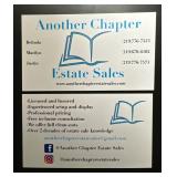Another Chapter Estate Sales Contact: Belinda Phone: 219-776-7553 Email: Anotherchapterestatesales@gmail.com EstateSale.com ID#: 15307 View company information and listings |