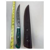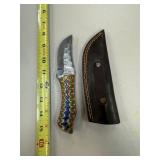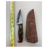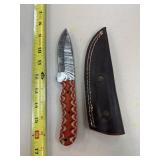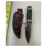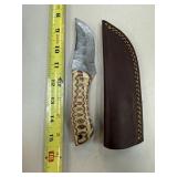 DAMASCUS STEEL FIXED BLADE KNIFE W SHEATH |