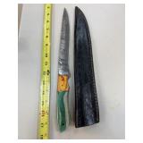 LARGE DAMASCUS STEEL FIXED BLADE KNIFE W SHEATH |