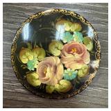 VINTAGE HAND PAINTED LACQUER BROOCH PIN |