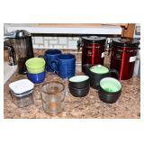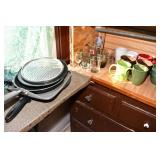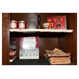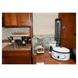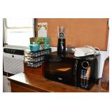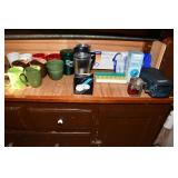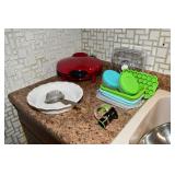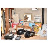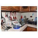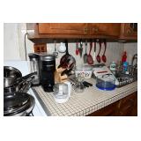 Rolling pin Sifter Lamb mold Candles Microwaves Keurig Steamer Revereware pans Haegar figural pottery Tea set Small appliances Dishes Plasticware Corelle Corningware