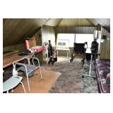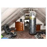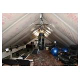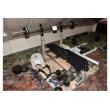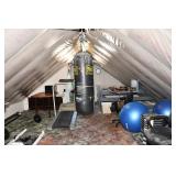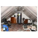Nordic track vu 19 bike Nordic track i7 incline treadmill (40%) Weight bench Weights Punching bags Yoga balls Fans
