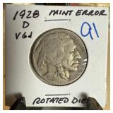 1928-D STEEL WHEAT PENNY CENT ROTATED DIES |