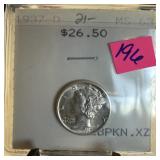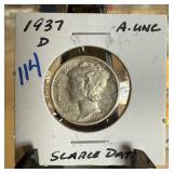 1937-D MERCURY SILVER DIME HIGH GRADE |