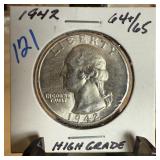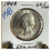 1943 WASHINGTON SILVER QUARTER UNC |