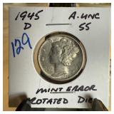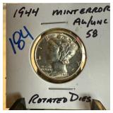 1944 MERCURY SILVER DIME ROTATED DIES |