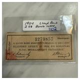 1924 LLOYD BANK 2 SZELVENY BOND NOTE |
