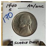 1940-S JEFFERSON NICKEL SCARCE DATE BETTER |