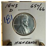 1943-D STEEL WHEAT PENNY CENT HIGH GRADE |