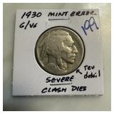 1930 BUFFALO NICKEL SEVERE CLASHED DIES |