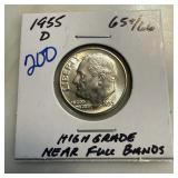 1955-D ROOSEVELT SILVER DIME NEAR FULL BANDS |
