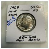 1963 ROOSEVELT SILVER DIME FULL BANDS |