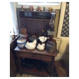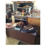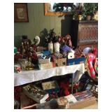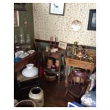 The old home is loaded with antiques and collectibles. We have furniture, glassware, decorative items, primitives, decorated stoneware crocks, majolica, vintage and grandma clothing, prints, oil lamps, barrister bookcase, washstand, hall tree, large cement garden statue, record cabinet, ladder back chairs, pie safe, and much more. Better pictures will be posted after we set up. Looking forward to seeing you there. we have added an extra day. Monday from 9 to 12 for all our customers that will be picking up furniture and for those of you who could not make it here this weekend. |