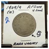1909/9 RPD LIBERTY V NICKEL RARE VARIETY |