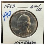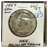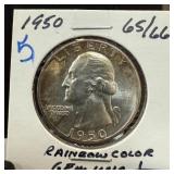 1950 WASHINGTON SILVER QUARTER GEM UNC RAINBOW |