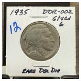 1935 BUFFALO NICKEL DDR-002 DOUBLE DIE |