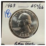 1963 WASHINGTON SILVER QUARTER UNC |