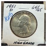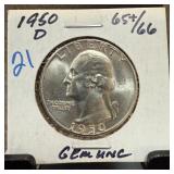 1950-D WASHINGTON SILVER QUARTER UNC |