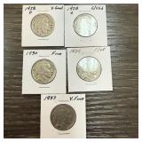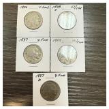 5PC MIXED DATE BUFFALO NICKELS |
