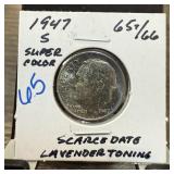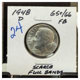 1948-D ROOSEVELT SILVER DIME FULL BANDS |