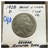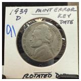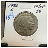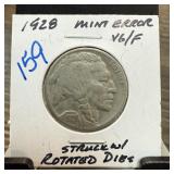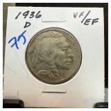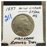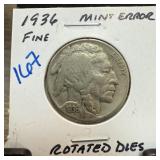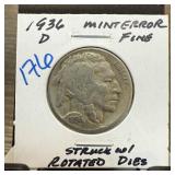 1936-D BUFALO NICKEL STRUCK W ROTATED DIES |