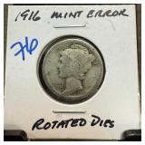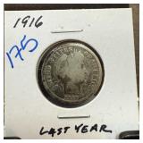 1916 BARBER SILVER DIME |
