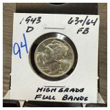 1944-D MERCURY SILVER DIME HIGH GRADE |