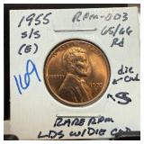 1955-S/S WHEAT PENNY CENT RPM-003 DIE CUD |