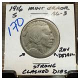 1916-S BUFFALO NICKEL STRONG CLASHED DIES |