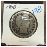 1908 BARBER SILVER QUARTER |