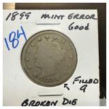 1899 LIBERTY V NICKEL BROKEN DIE FILLED 9 |