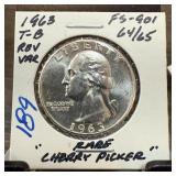 1963 T-B WASHINGTON SILVER QUARTER CHERRYPICKER |